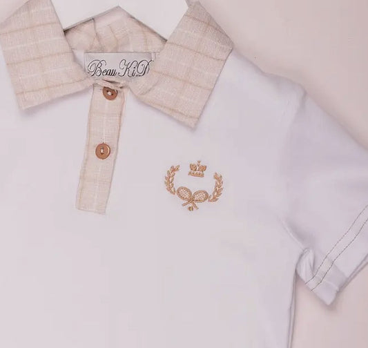 Fofo Bear - Two Piece Set - Blue Checked Shirt & Cotton Dungarees