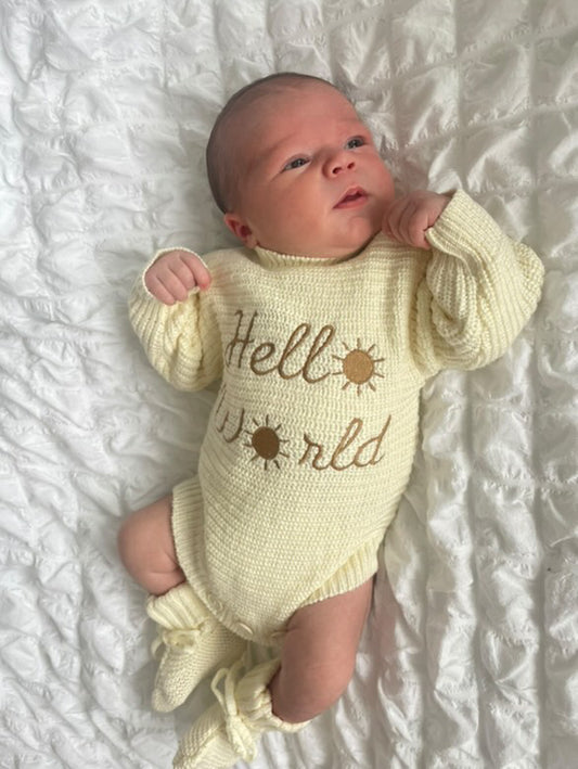 Hello World Bundle - Beanie, Booties & Romper - Sand