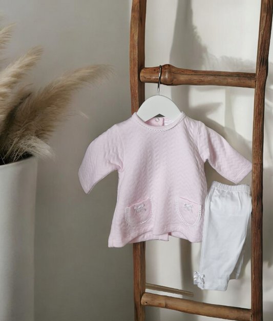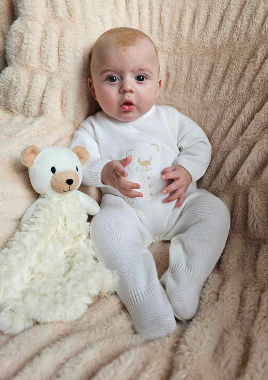Victoria sleepsuit - White Velour Sleepsuit With Elegant Pink Satin Bow