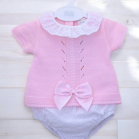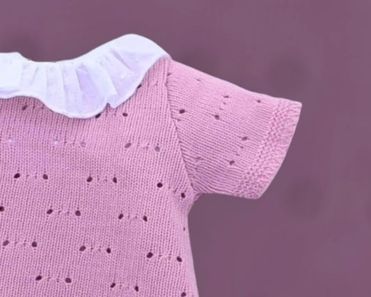 Silver Roses And Bows Smocked Sleepsuit - Cotton Sleepsuit - Pink