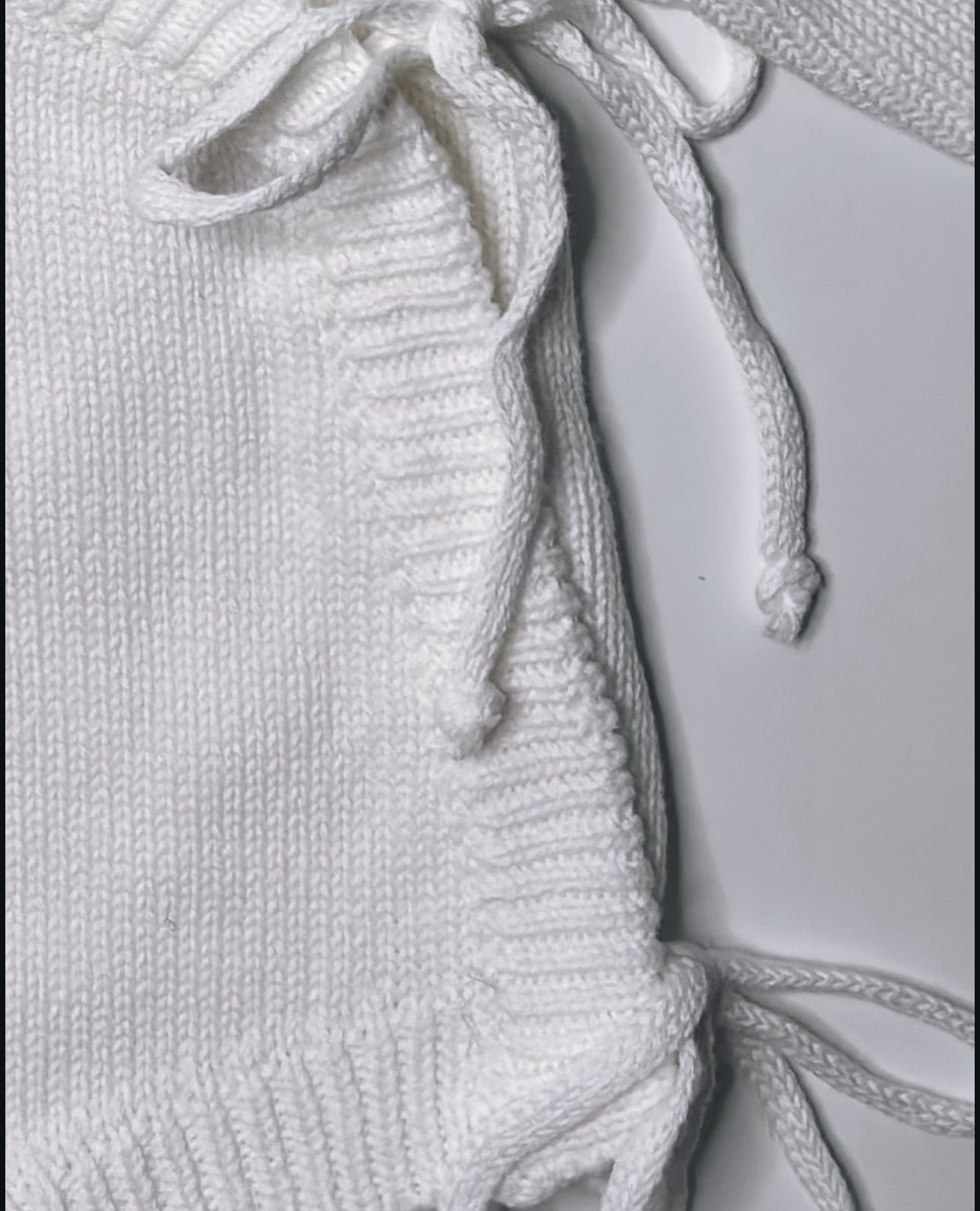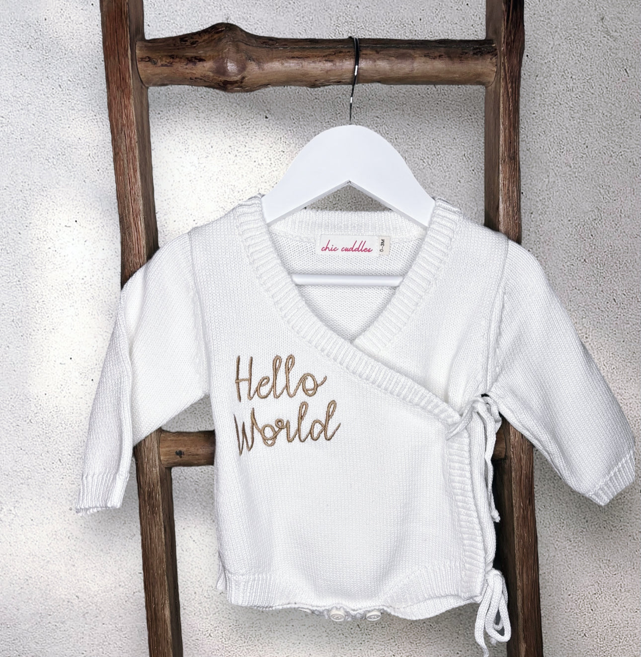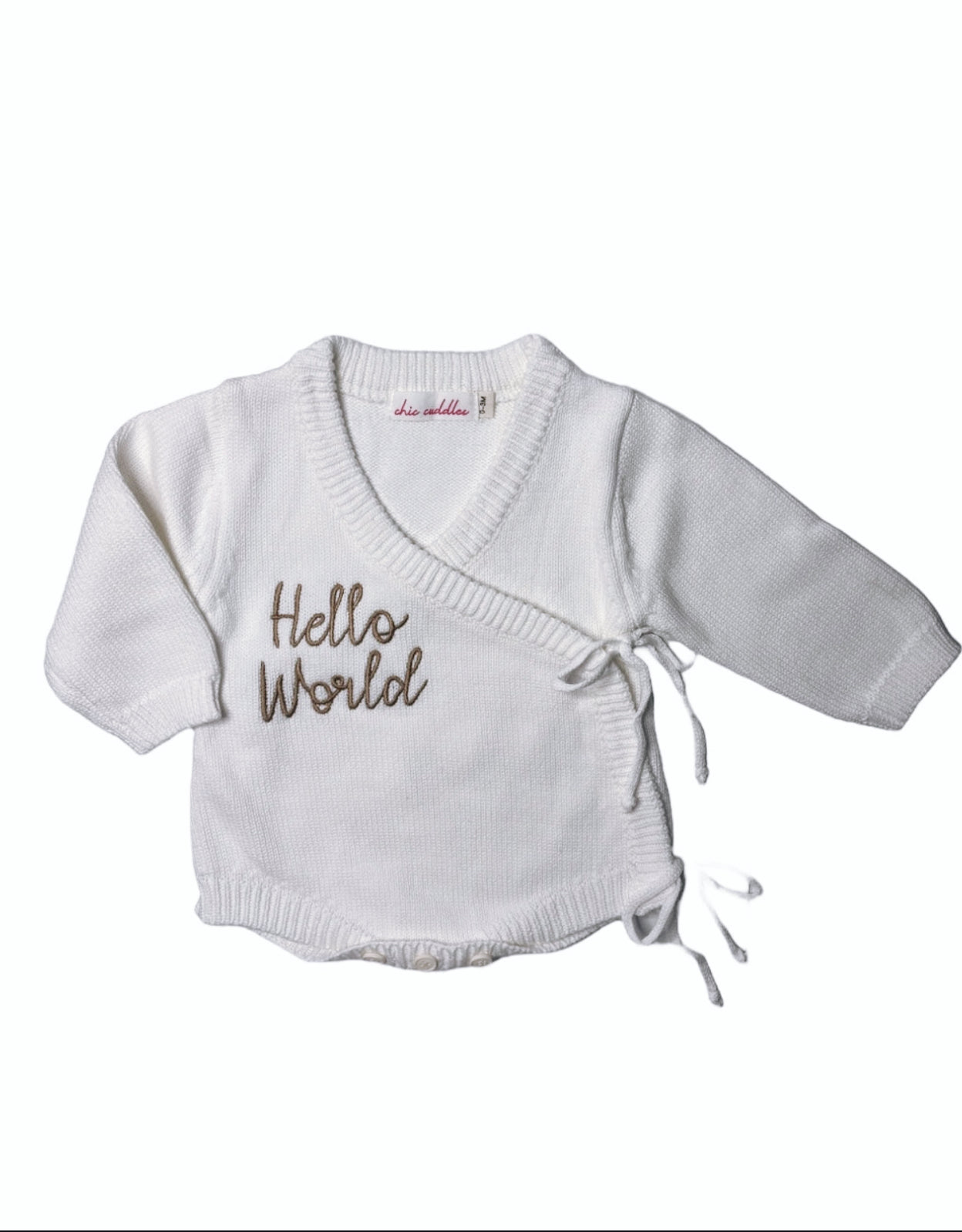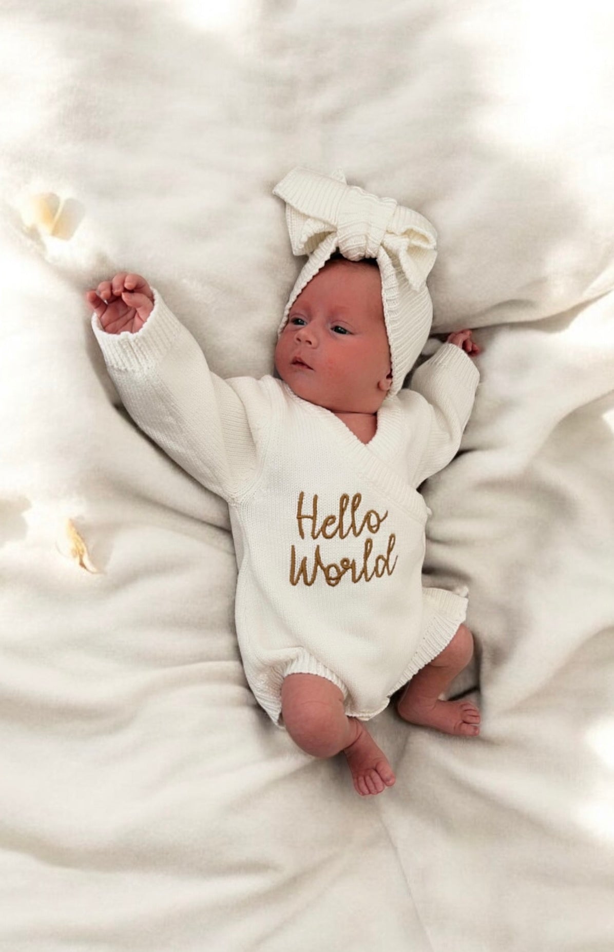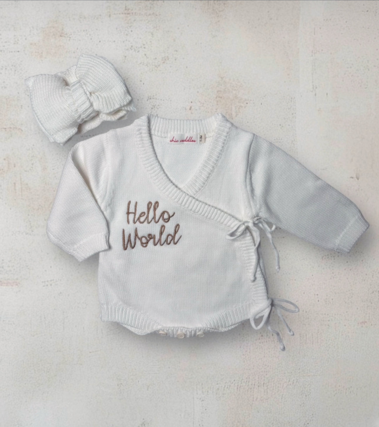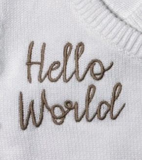Baby Girls Chunky Knit Hello World Side Tie Romper