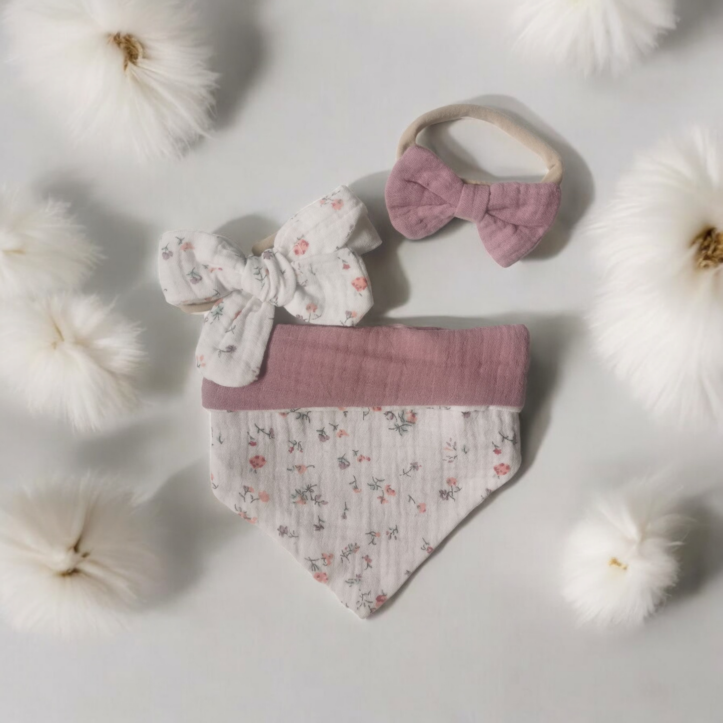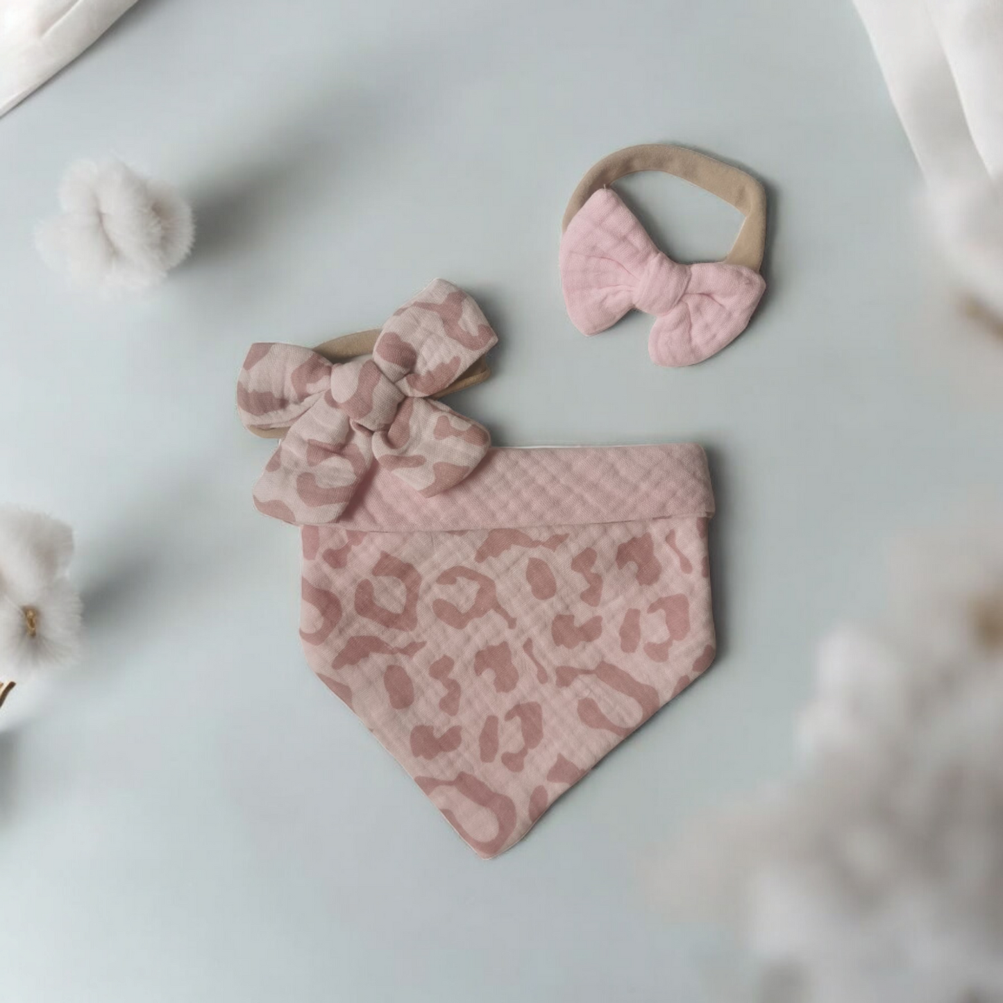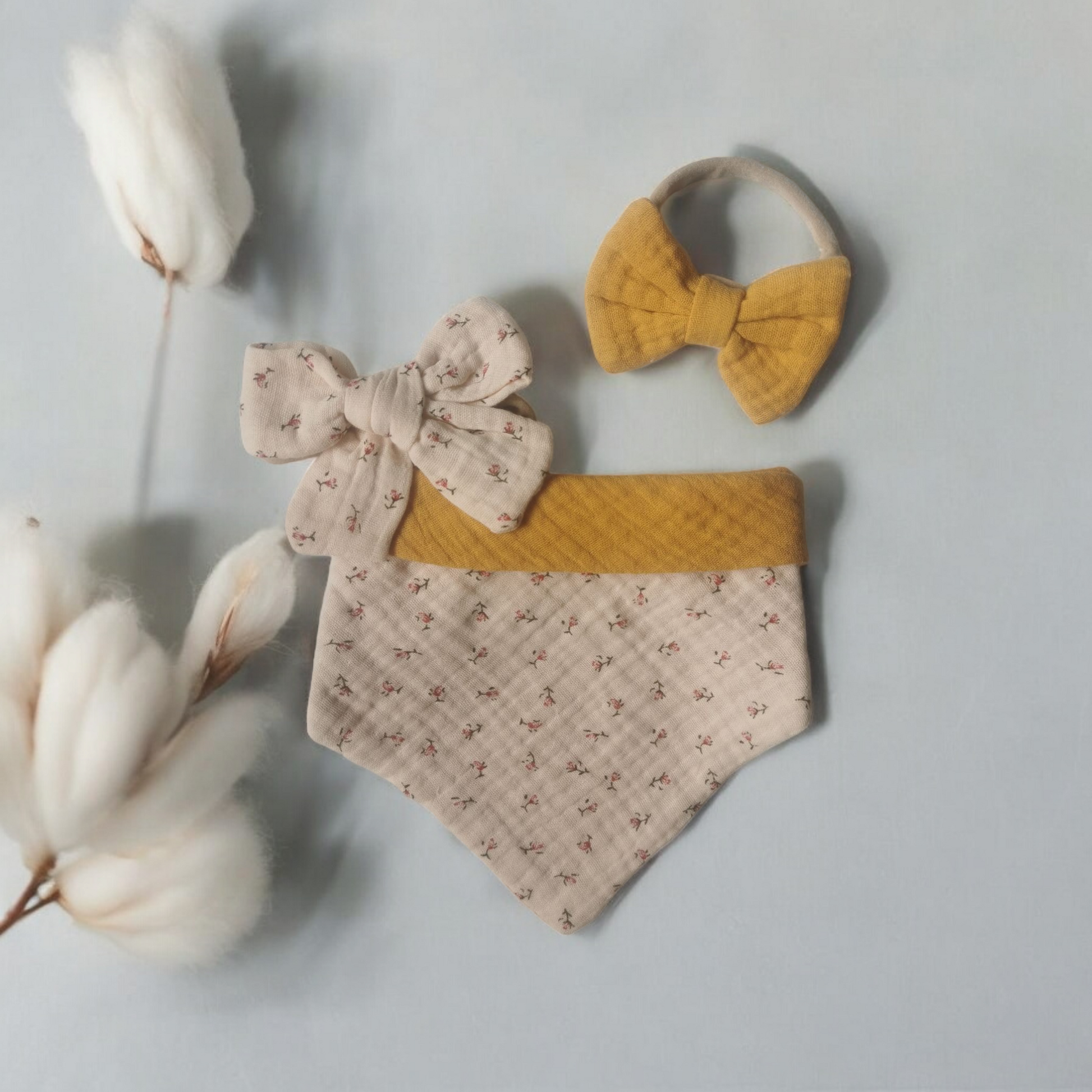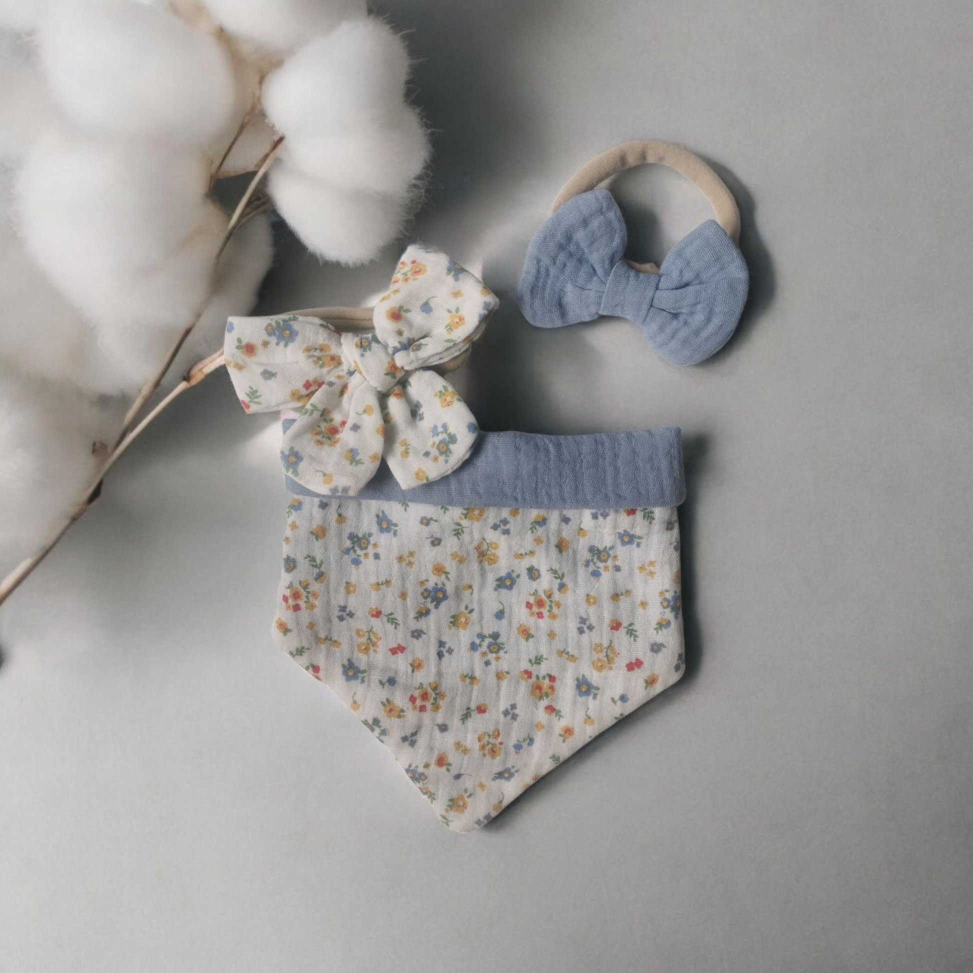 Bandana cotton dribble bib set with matching bows