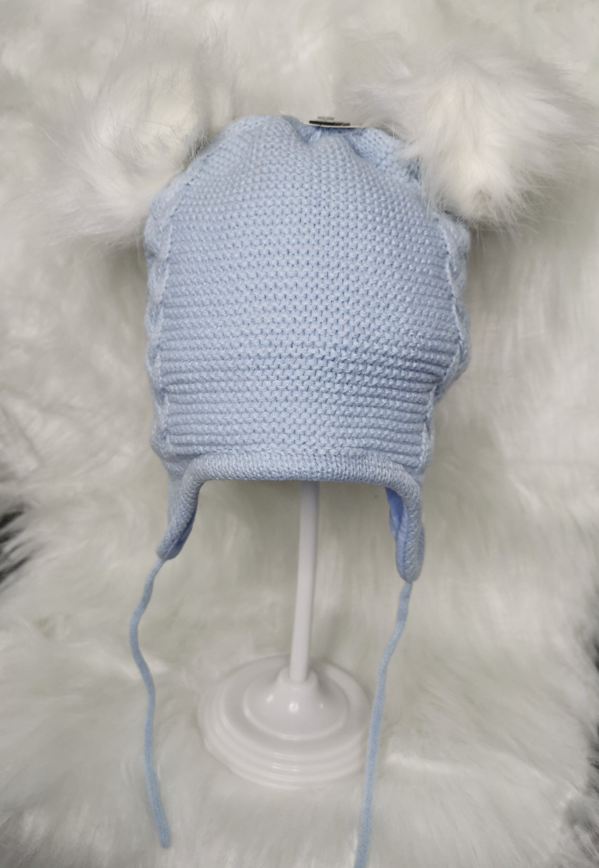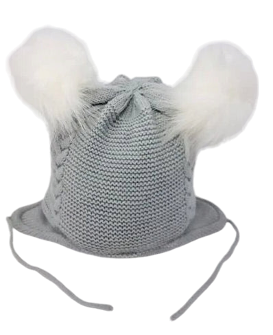 Double fur pom knitted hat - Cotton Lined