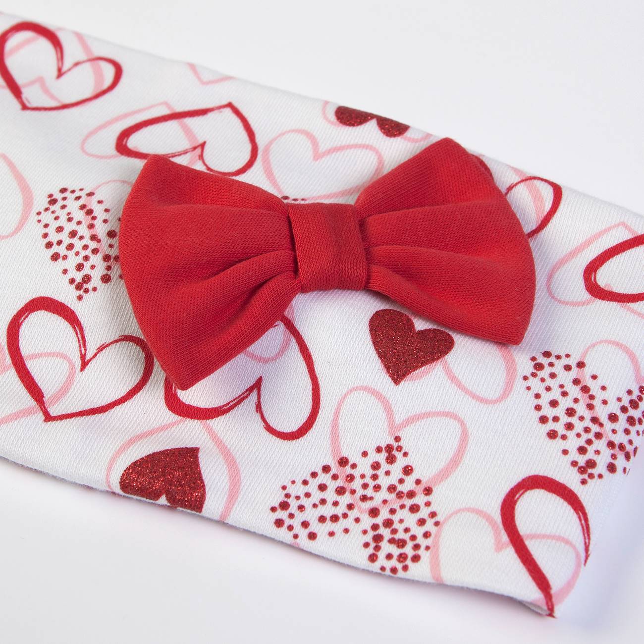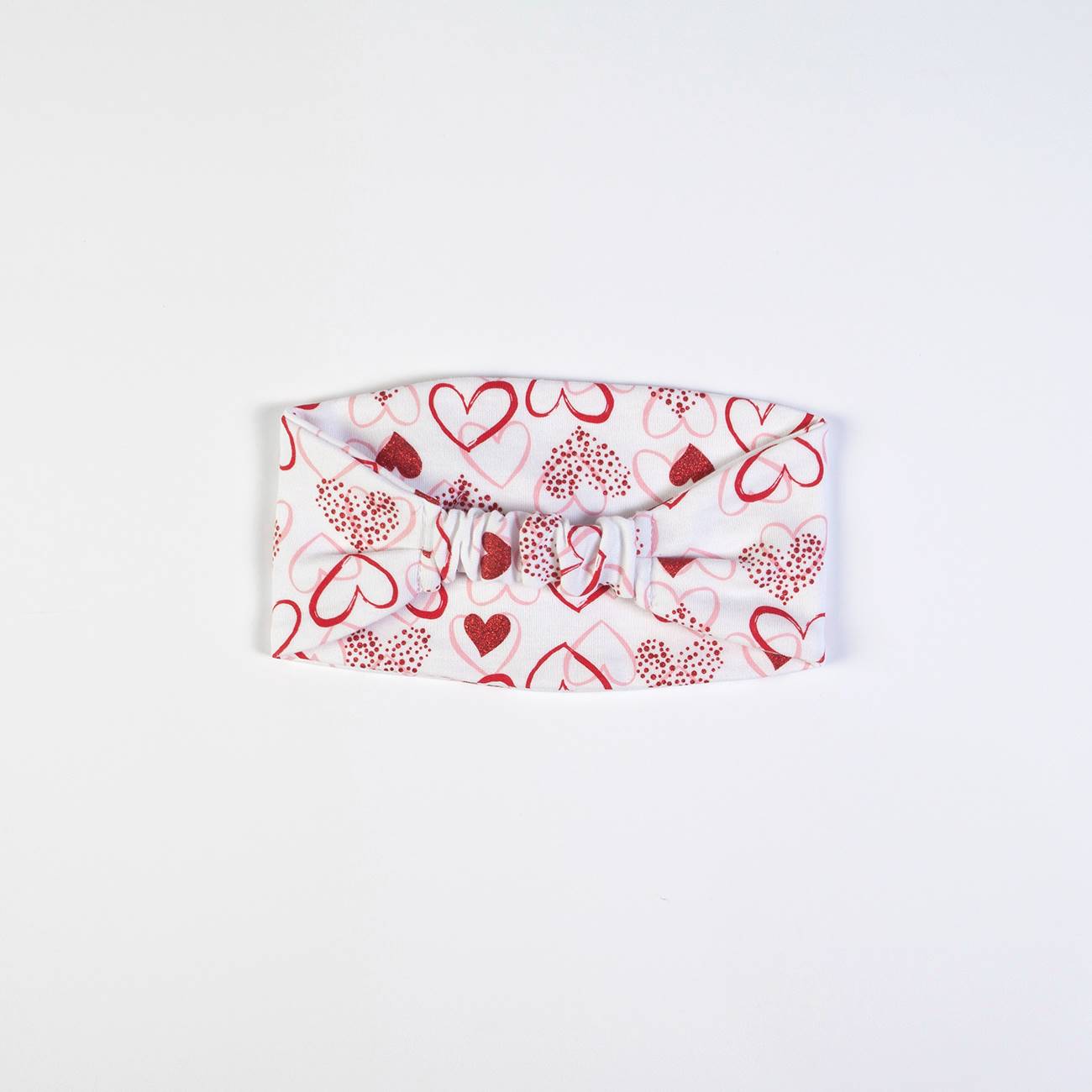 Organic Cotton Headband with delightful heart design and adorable red bow.