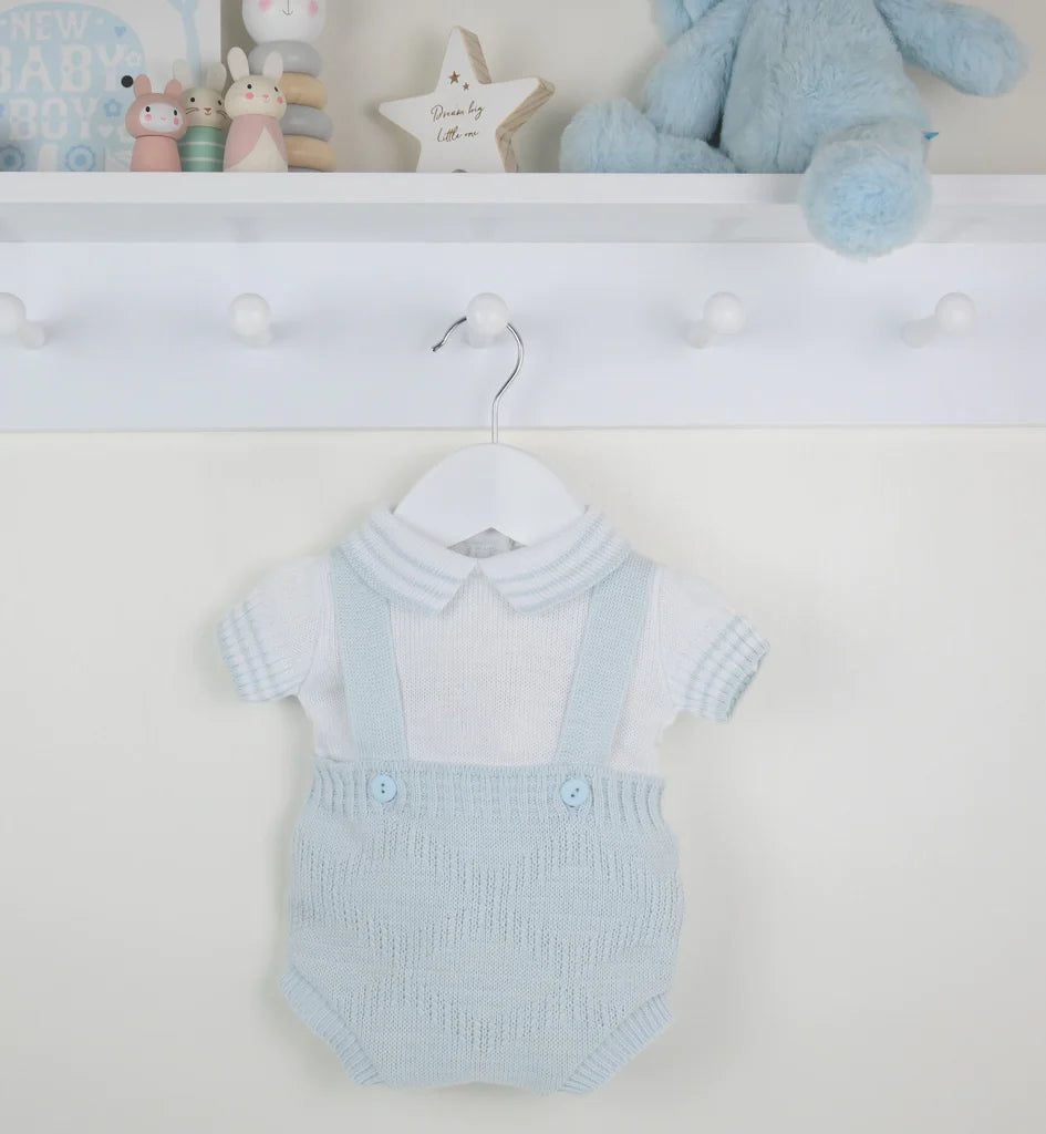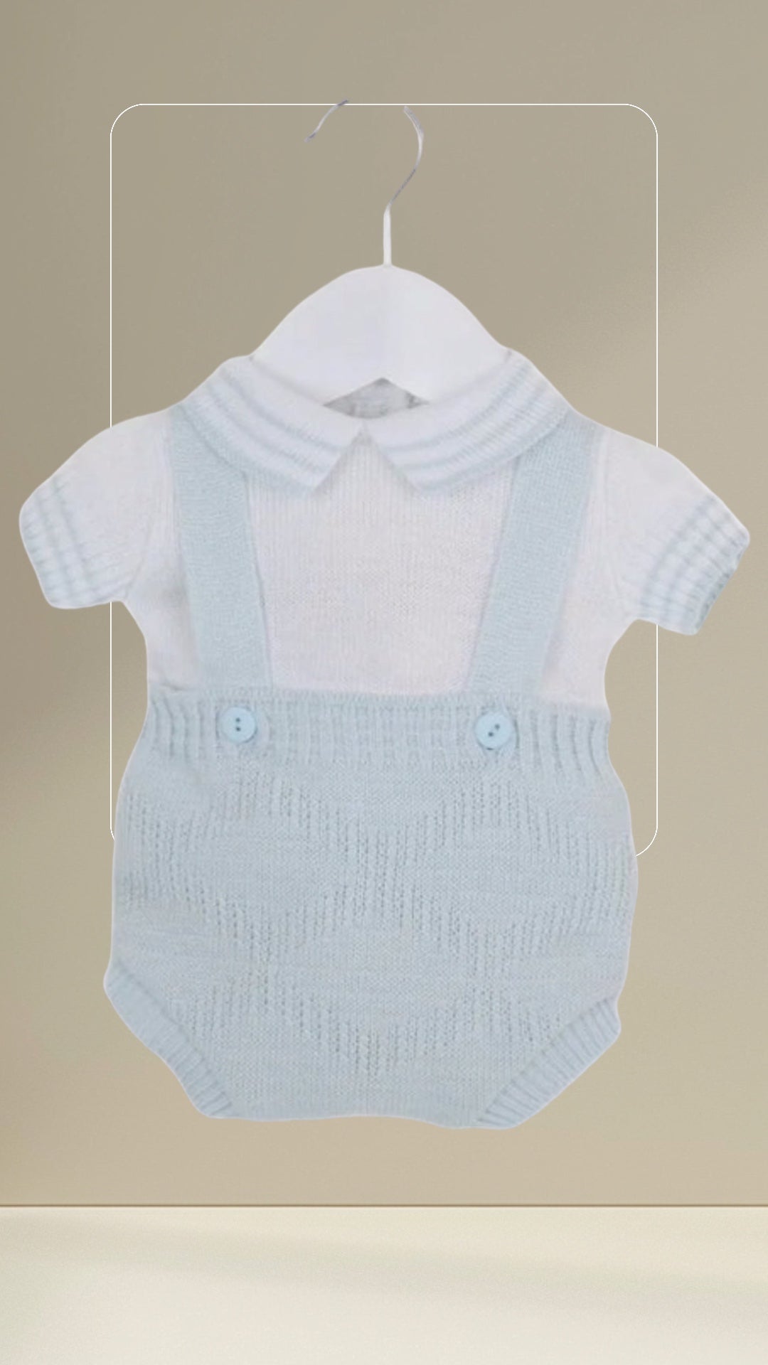 Crafted in 100% cotton, this great little two-piece outfit features the cutest little shorts with braces and a smart polo collar top. All the benefits of skin-kind cotton along with traditional styling.