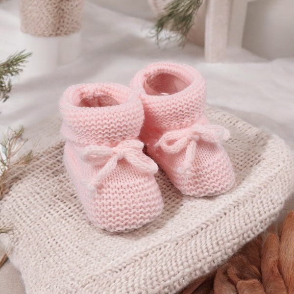 Charming knit booties with delicate bow, oozes pure comfort and style.