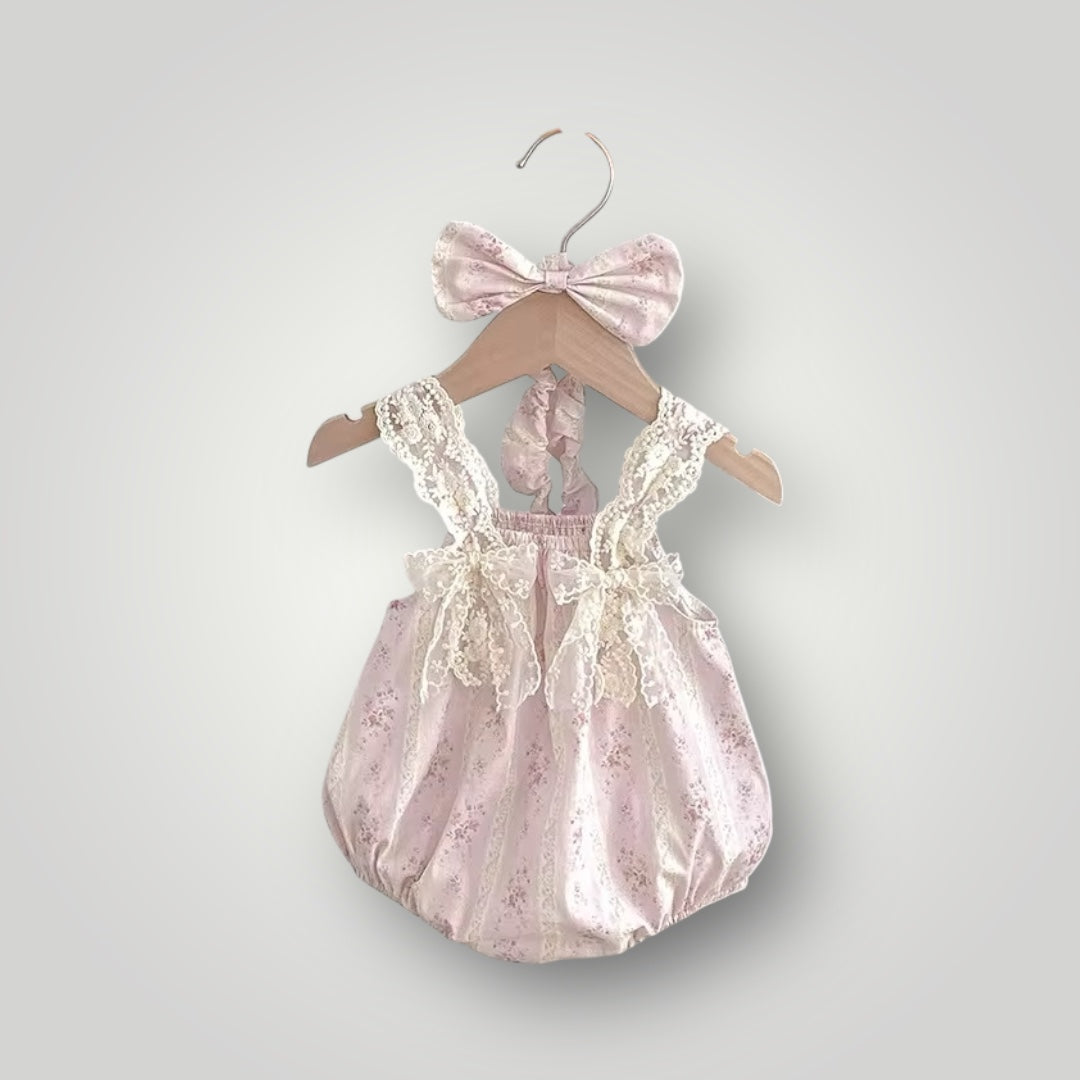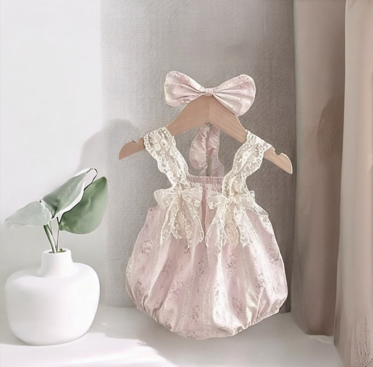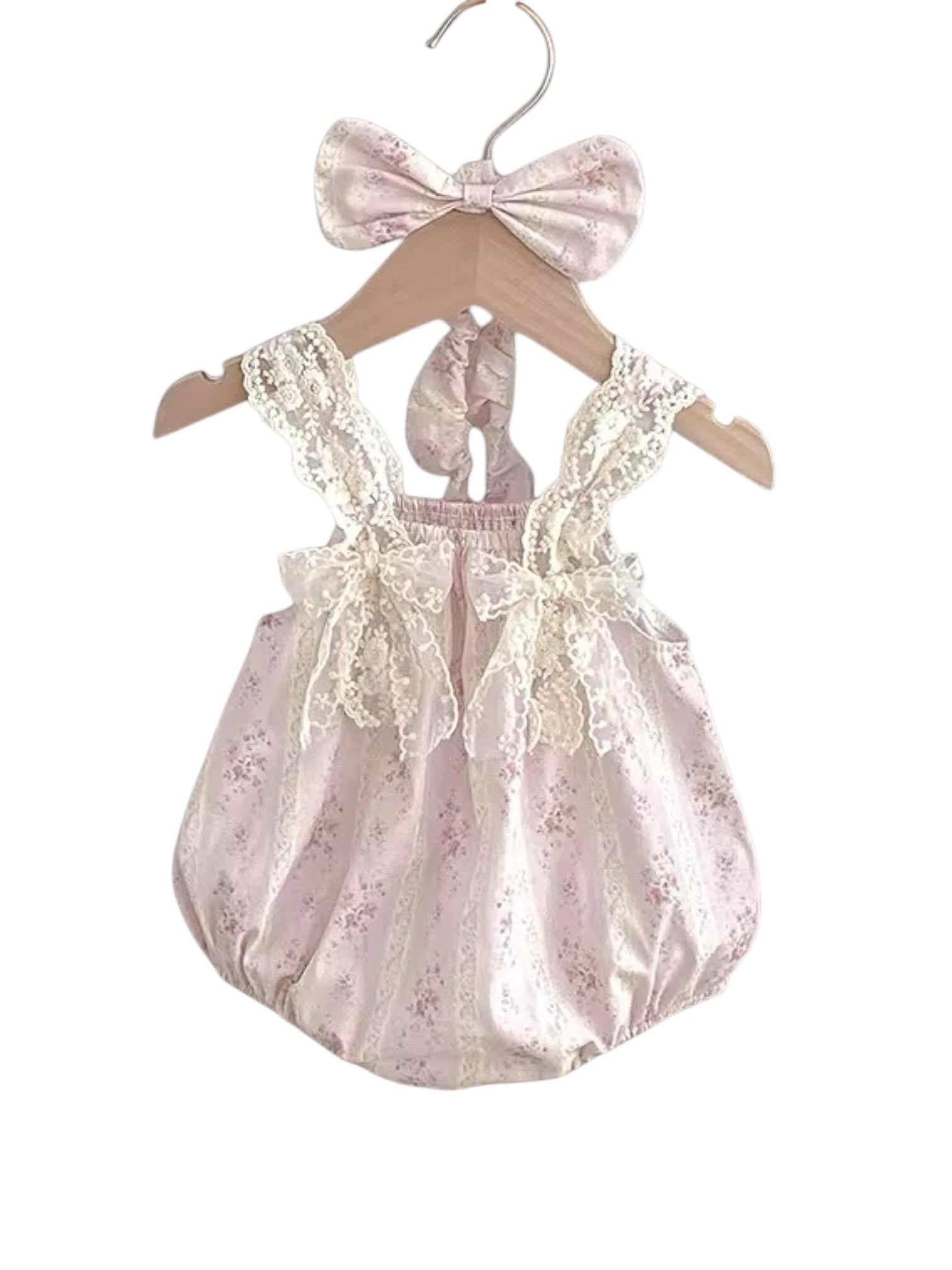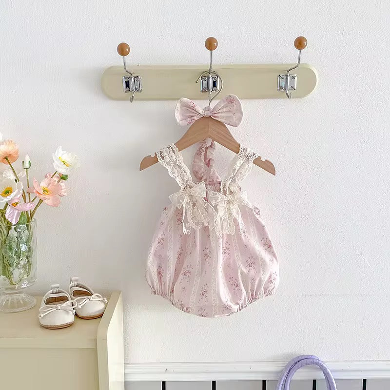 Keep your little one cool and stylish with this lightweight baby romper, perfect for sunny days and special outings. Made from soft, breathable fabric, it features delicate floral print, frilly lace straps, and a gently gathered waist for a sweet silhouette. Complete with a matching bow headband, it’s the ultimate summer outfit for your baby girl.