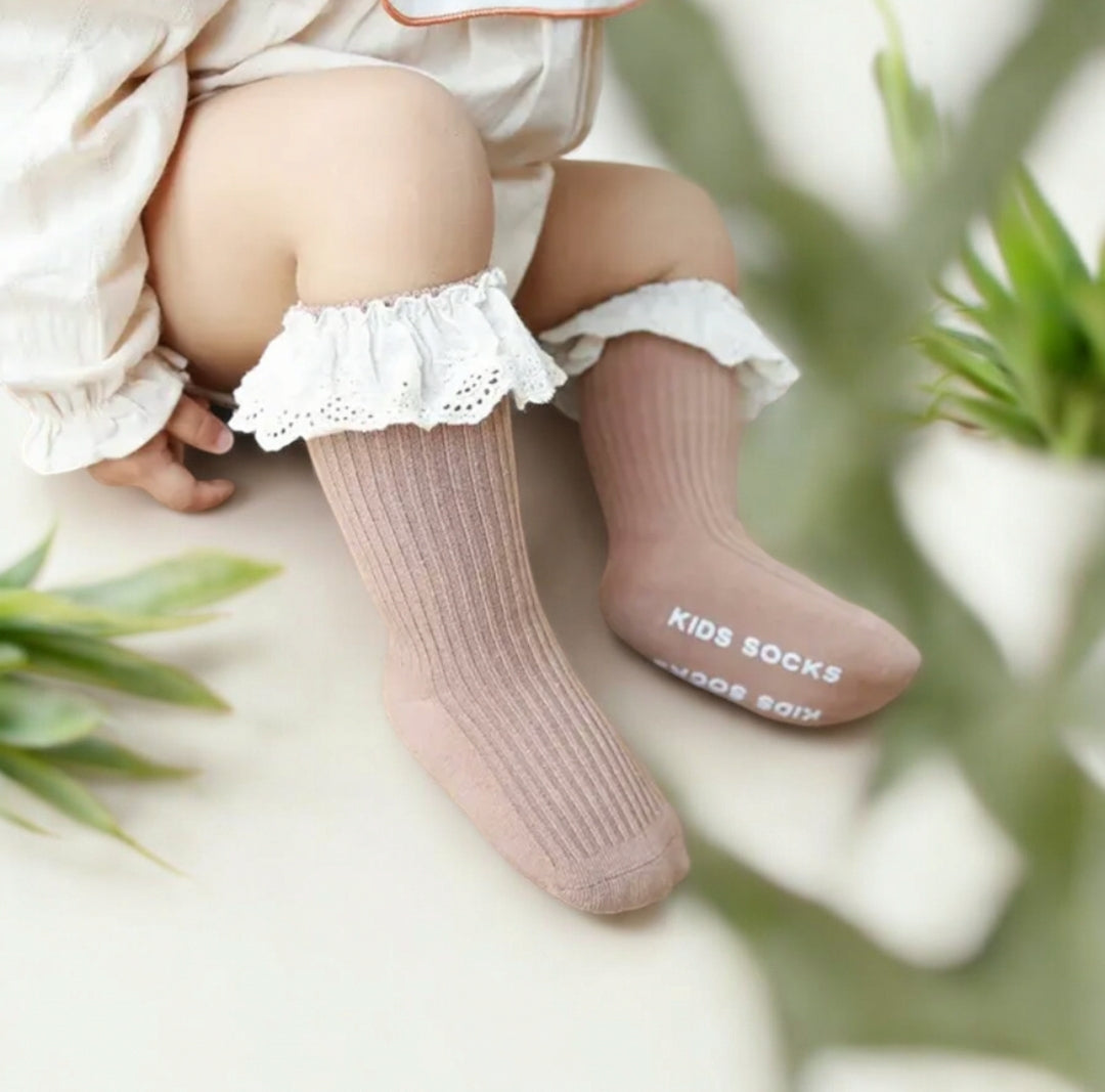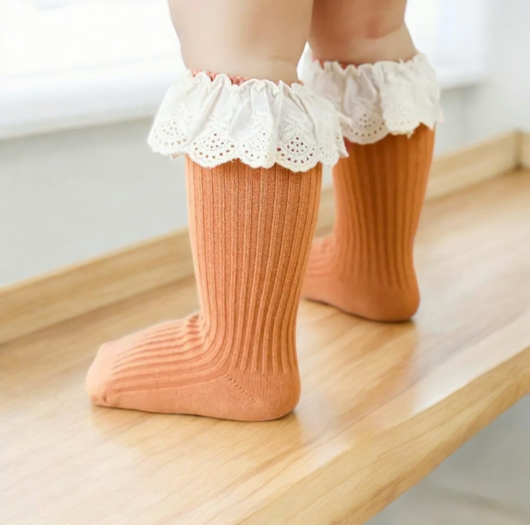 Beautiful baby girl vintage style knee socks that match perfectly with rompers and dresses.