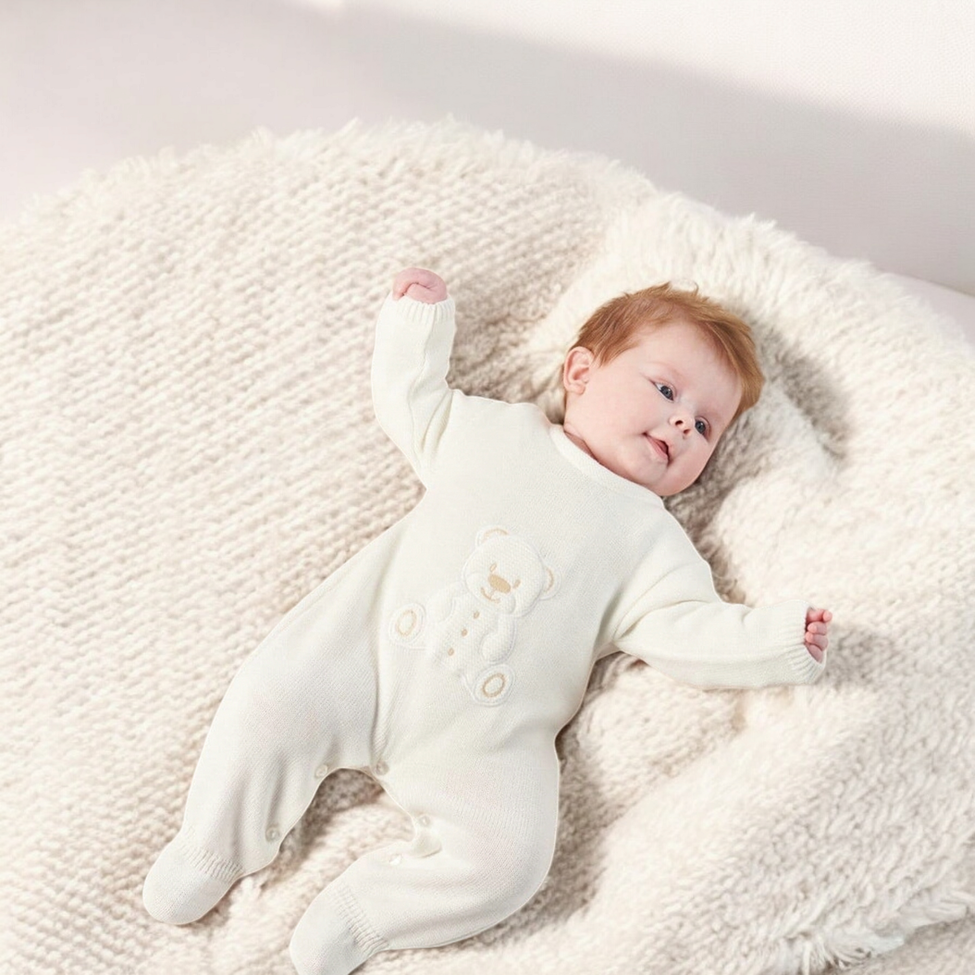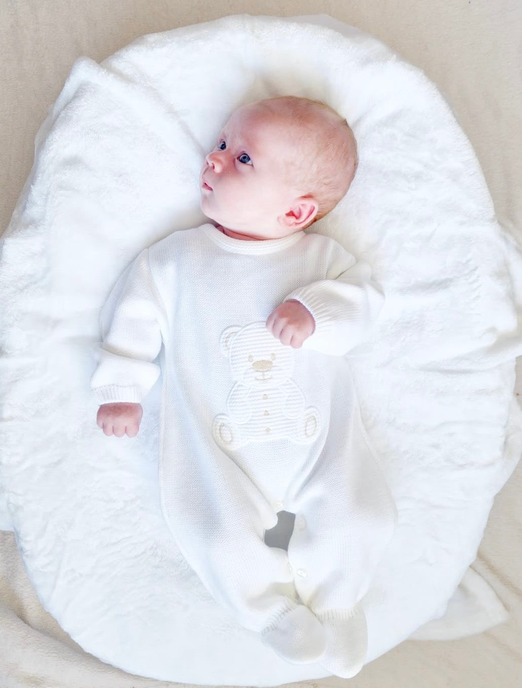 White teddy knitted onesie